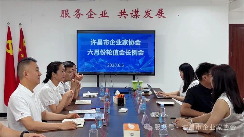 6月5日下午,許昌市企業(yè)家協(xié)會六月份輪值會長例會在協(xié)會會議室順利召開。本次會議由雙國商標(biāo)事務(wù)所李偉平主持,輪值會長團隊、新入會企業(yè)家及秘書處工作人員共同參會,會議內(nèi)容豐富,氛圍熱烈。